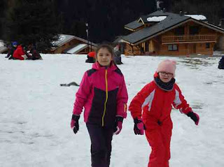 Après le repas, direction le ski (et ils ont eu du courage mais ils ont eu la banane toute la séance)